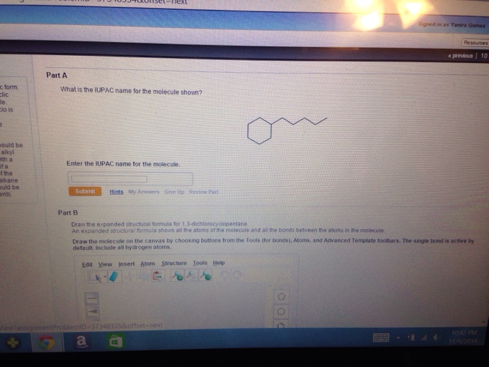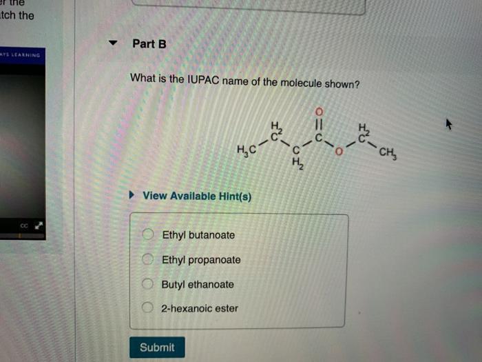 Solved Tch The Part B Y Learning What Is The Iupac Name Of Chegg Com